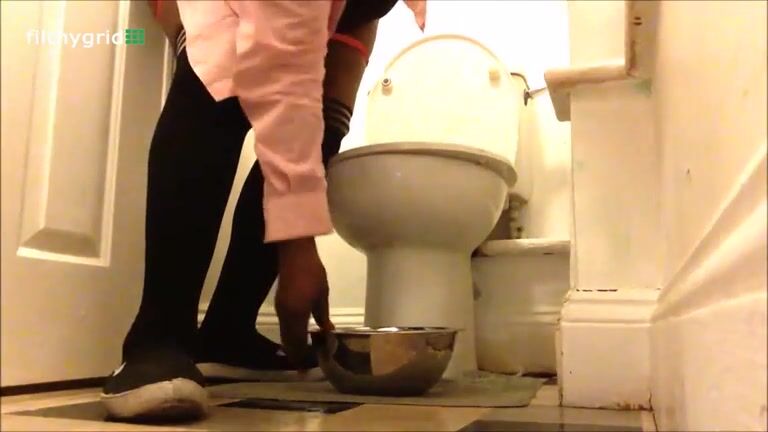 SSBBW black chick fills a bowl with shit