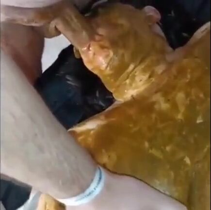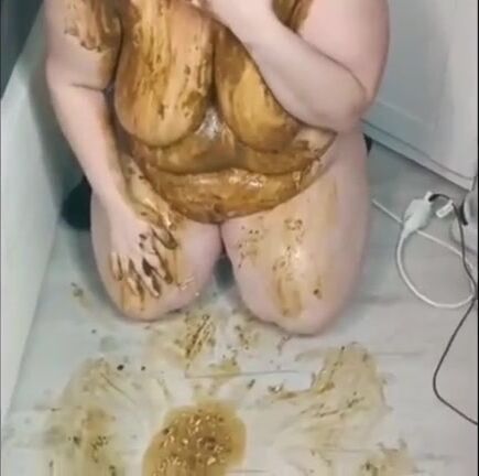 Scat BBW whore gets full mouth of shit