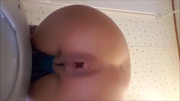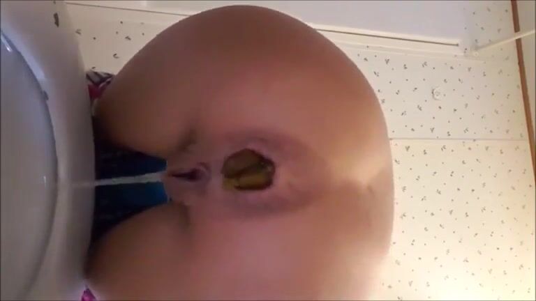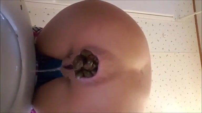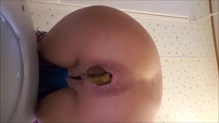 Petite babe shitting a huge turd
