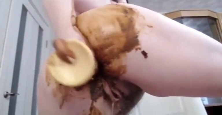 Busty girl play whit shit and dildo
