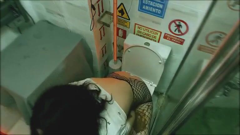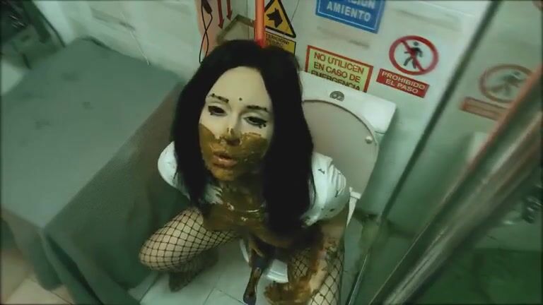 Girl open wide legs and shitting on the toilet floor