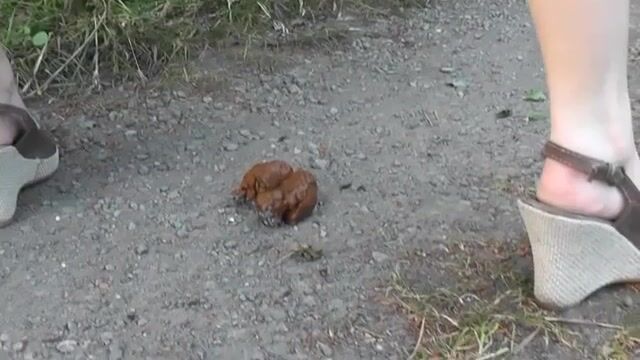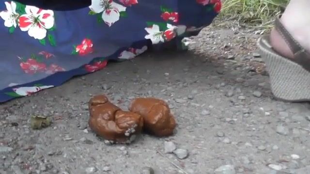 Girl does a big poop on a country lane
