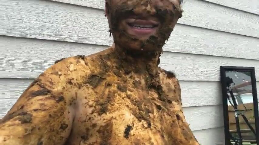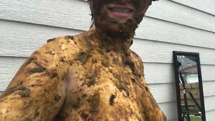 Dirty Scat Boy in shower. Smears face with shit