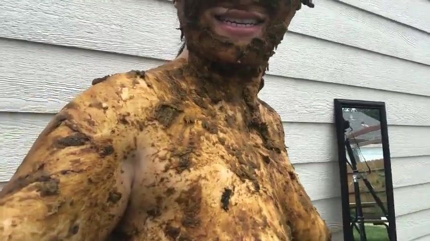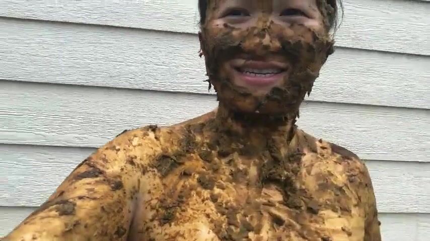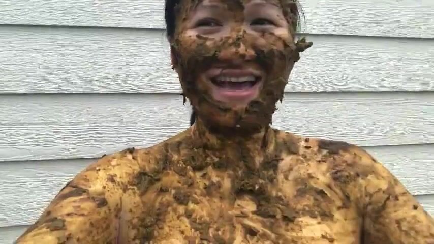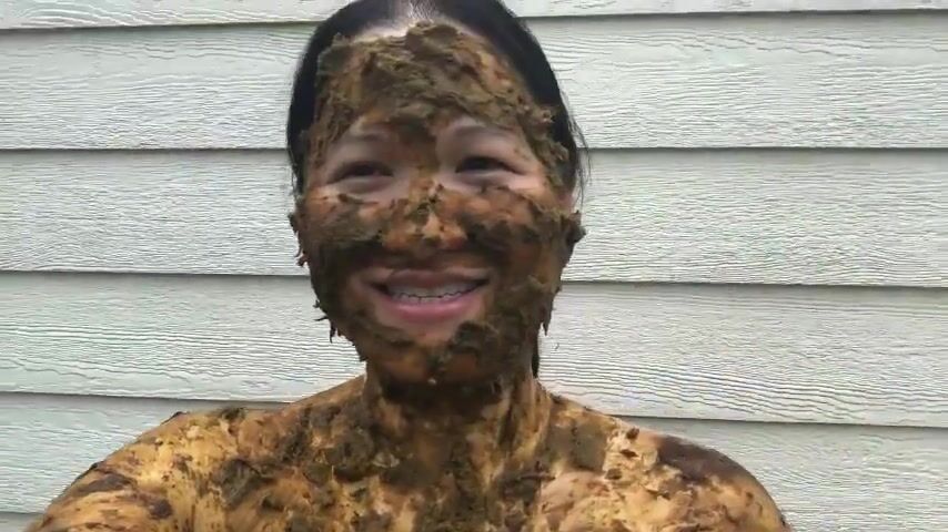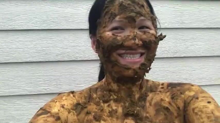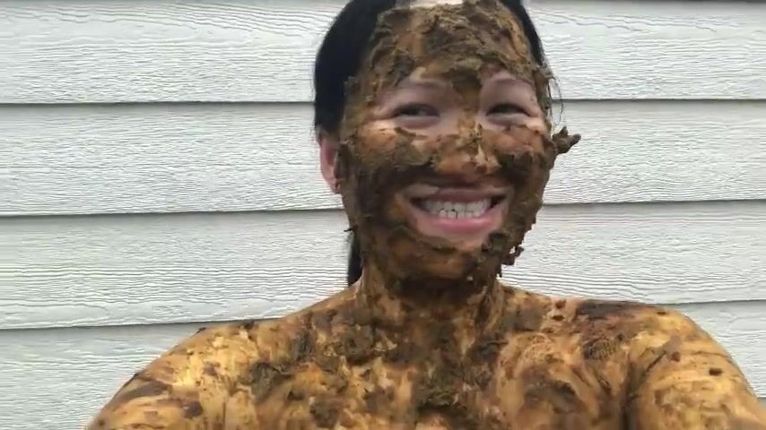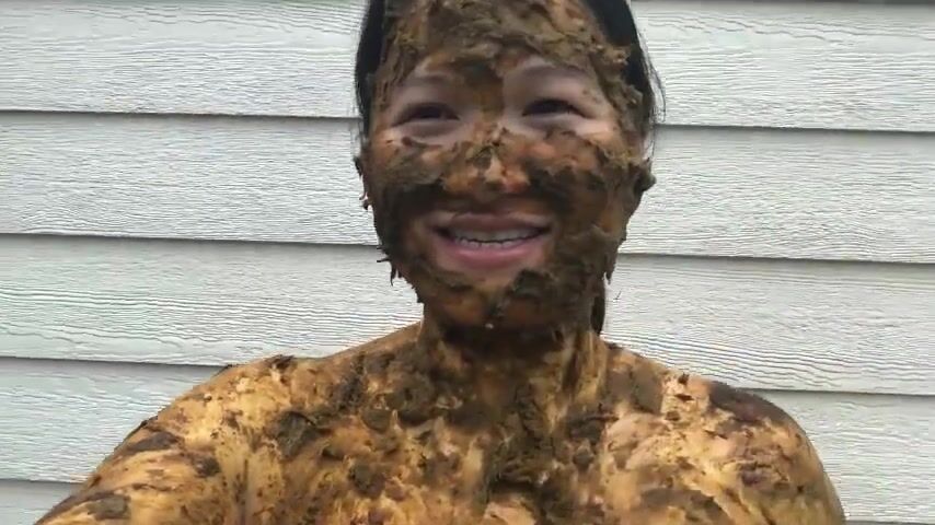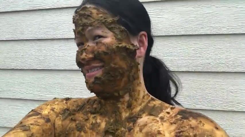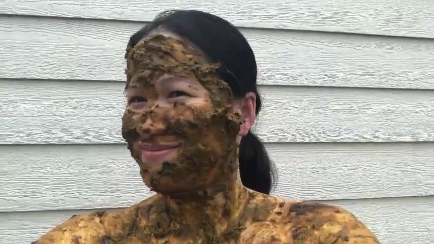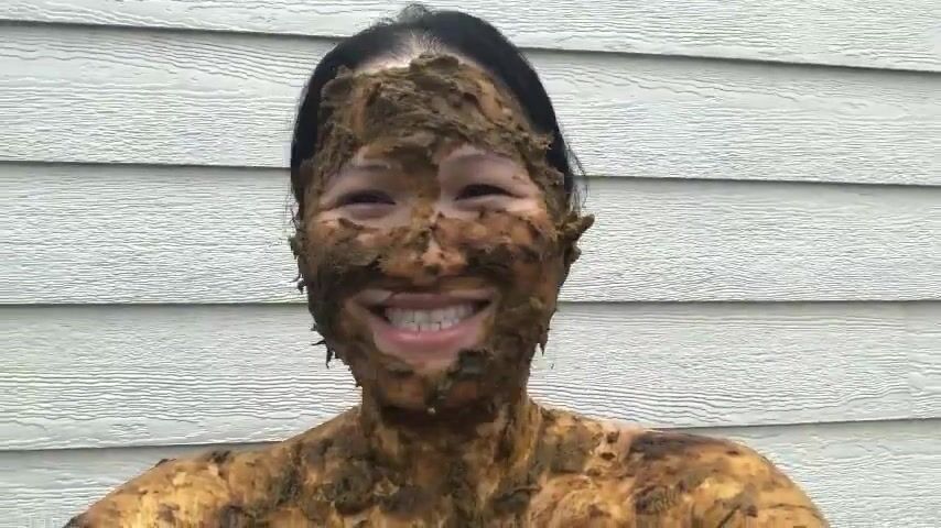 Asian woman smiles covered in scat
