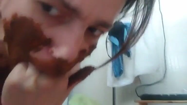Amateur woman eating shit from the box - Scat Fan Club