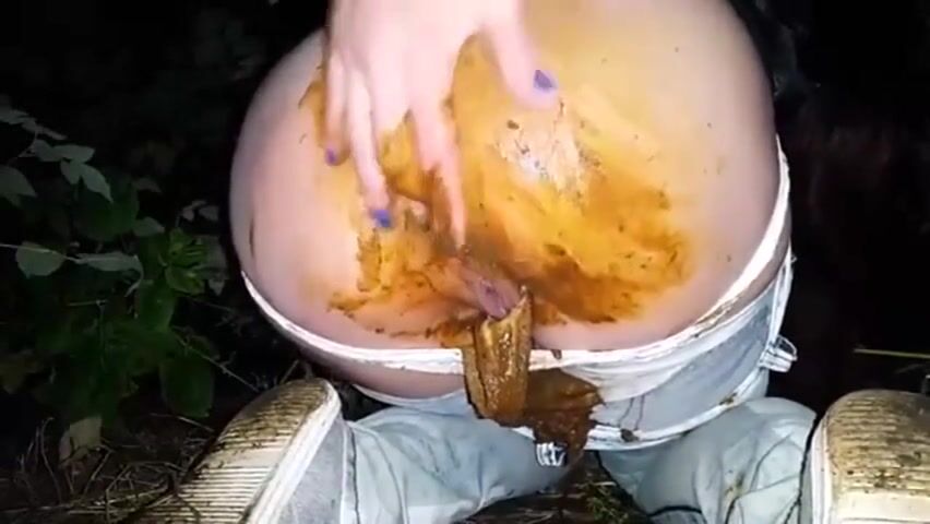 Disgusting slut loves shit outdoor