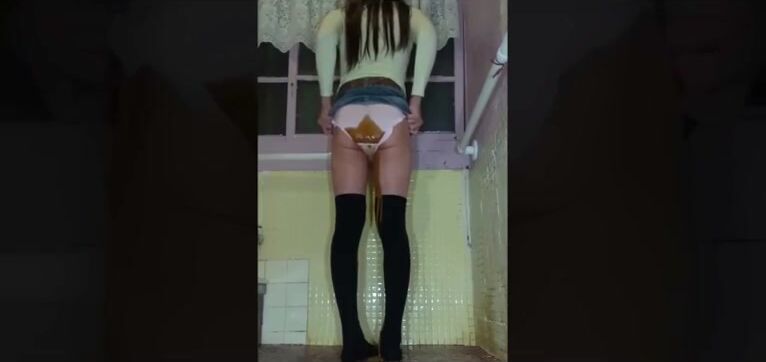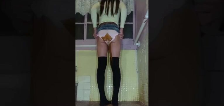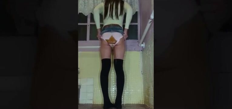 Panty poop diarrhea runs down legs and stockings
