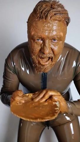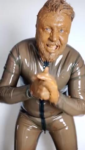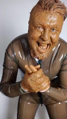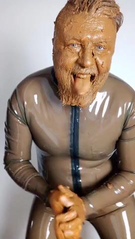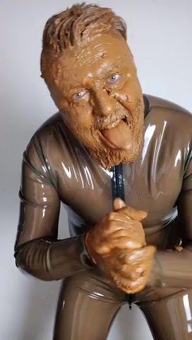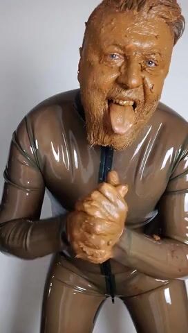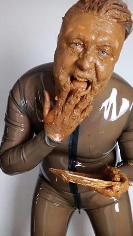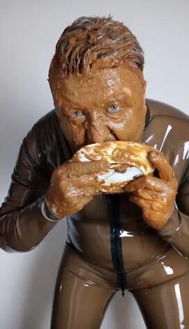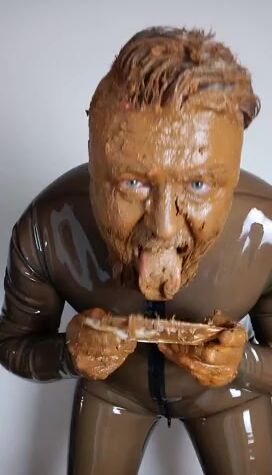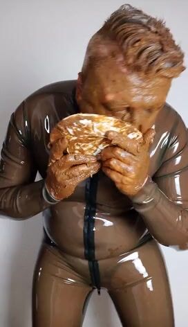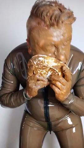 Full head shit smearing & eating in brown rubber