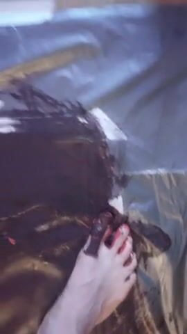 Art: painting with my feet black and red