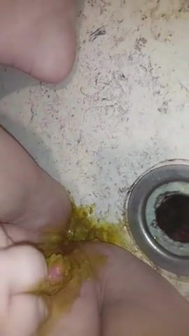 fat slut tries rubbing scat in pussy