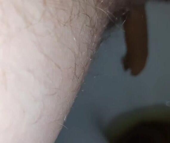 She kneels in the bathtub and poops