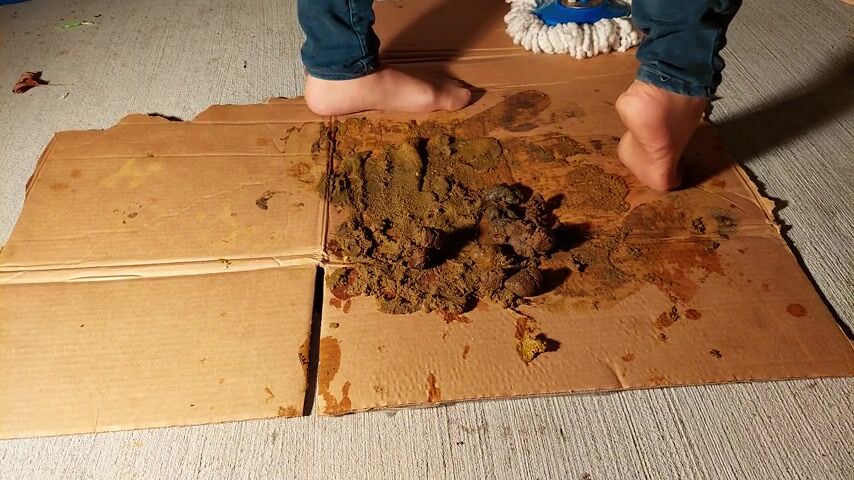 Girl open wide legs and shitting on the toilet floor