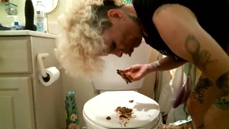 Tattooed blonde shitting and eating her shit - Scat Fan Club