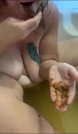 Scat slut eating shit in tub