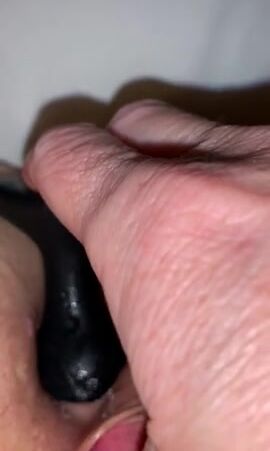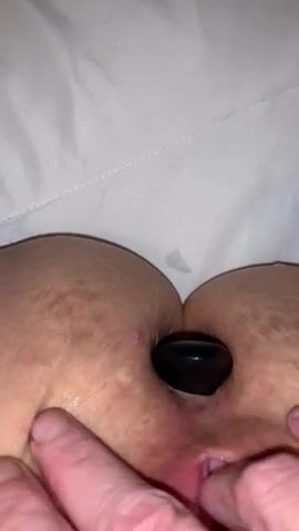 Scat slut inserting plug in tight asshole