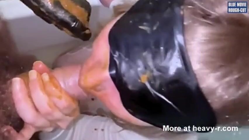 very dirty enema in bathtube