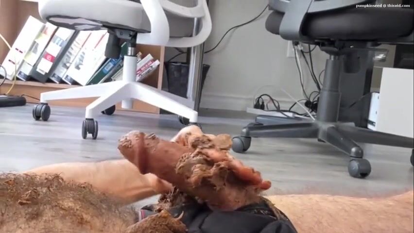 hairy young male smears and eats and cums