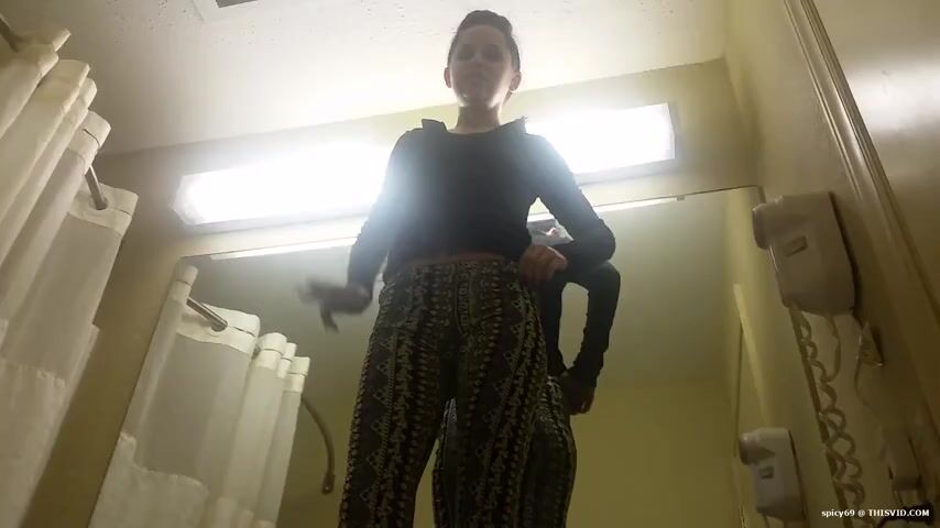 Girl open wide legs and shitting on the toilet floor