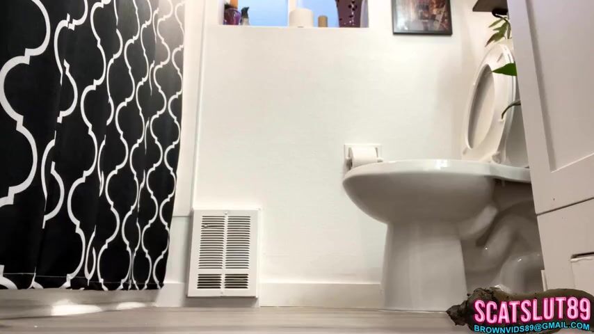 Girl open wide legs and shitting on the toilet floor