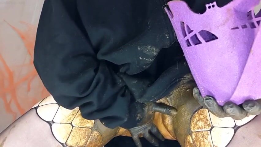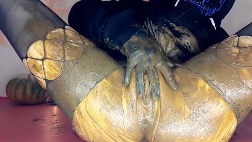Brunette covers beautiful ass with shit
