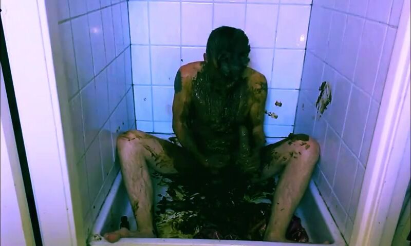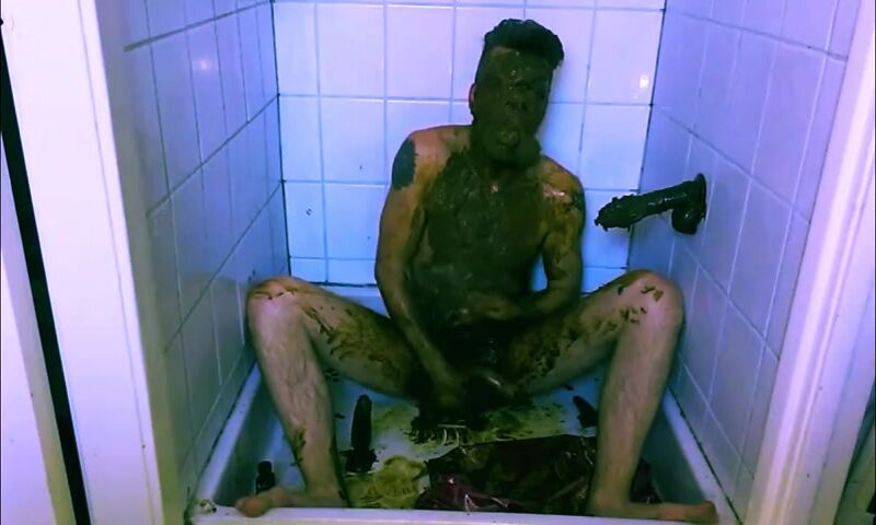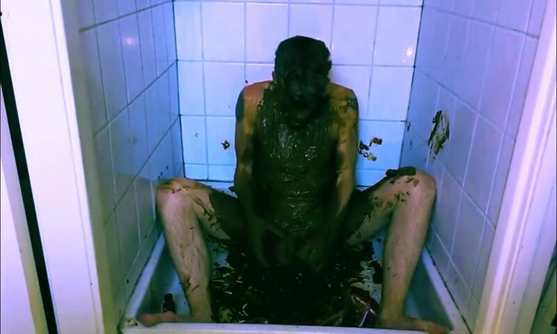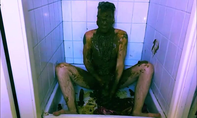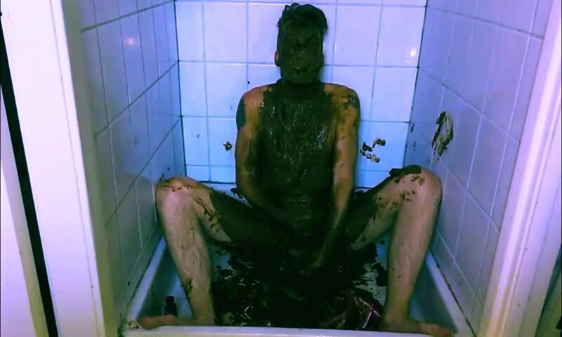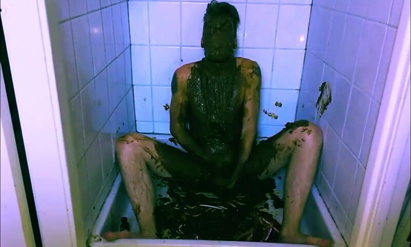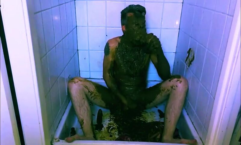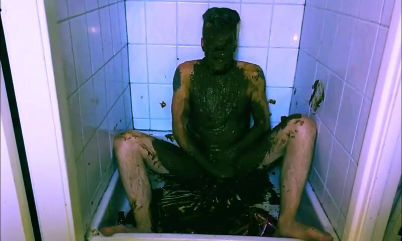 mature guy gets naked & covers himself in shit