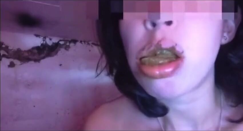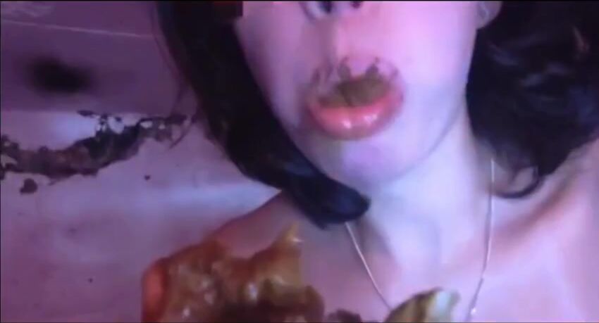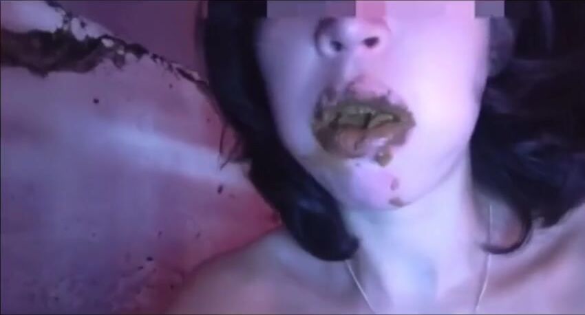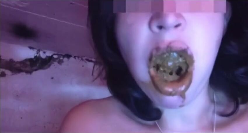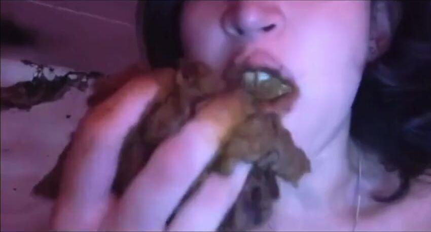 Amateur scat whore eating and swallowing shit