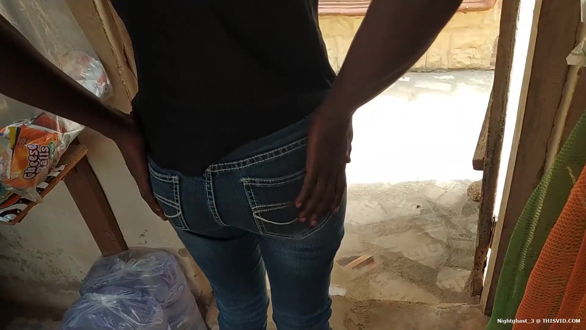 Hot ebony with a nice ass shits her panties