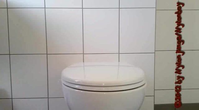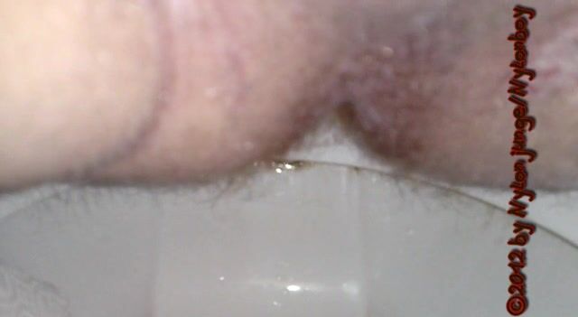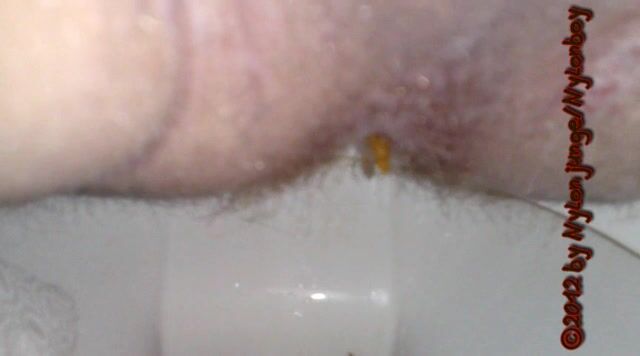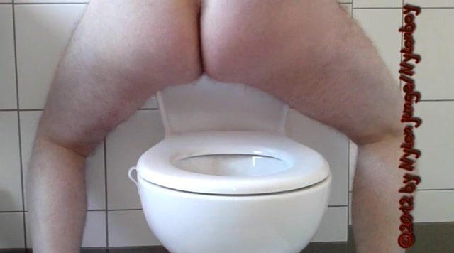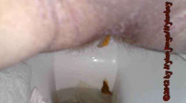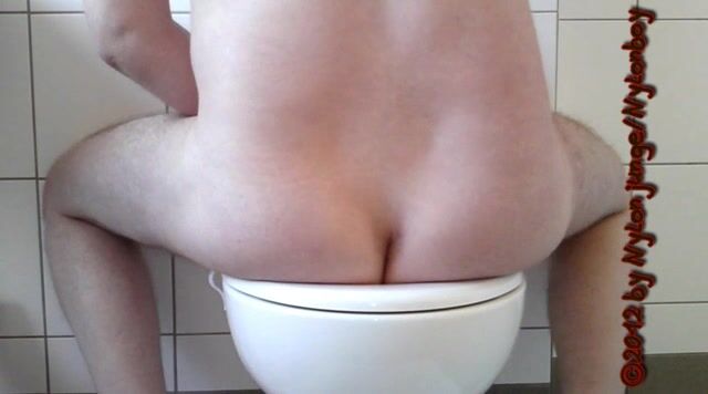 guy sitting on toilet piss with his small cock and shit