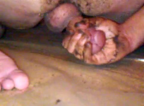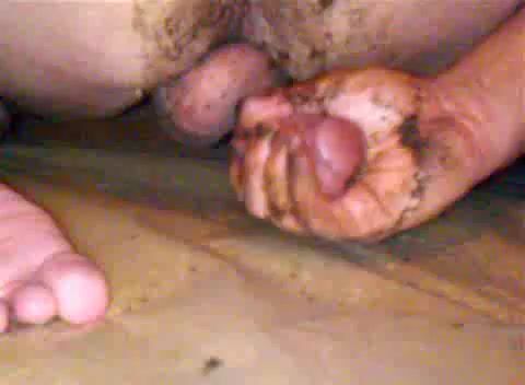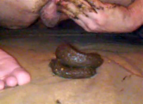 Caca sur les pieds, masturbation scato et double dose de sperme