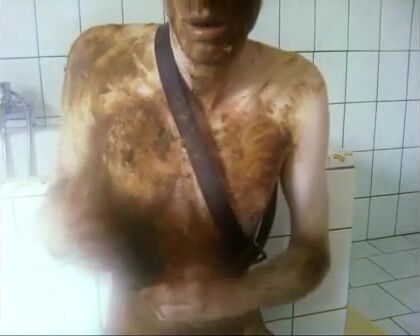 Sucking own shit off toothbrush and cumming 1