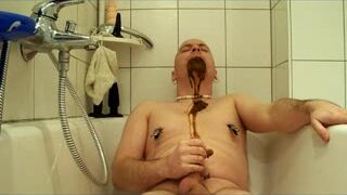 Un énorme caca dodu que j'expulse hors de mon cul, je déguste, j'éjacule 2x dessus