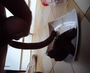 Je te fais un beau caca sur lequel j'éjacule en frottant mon sexe sur mon anus