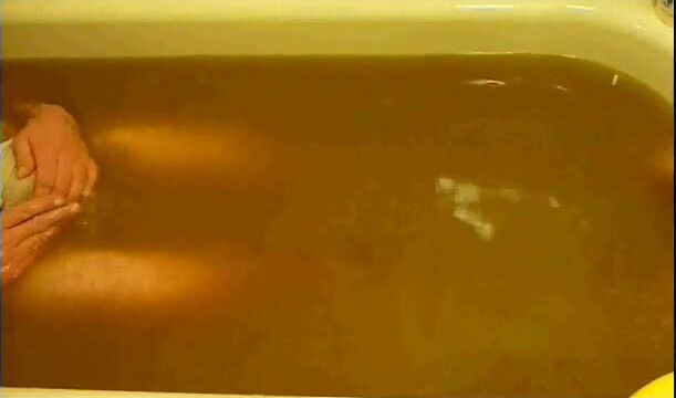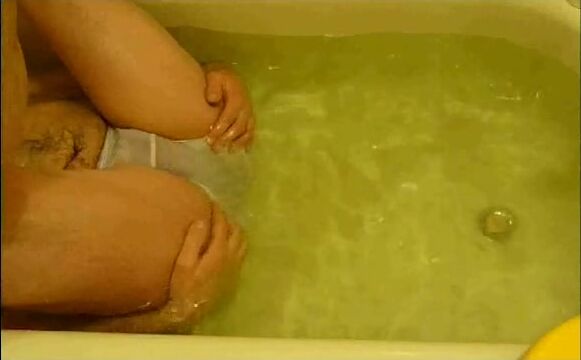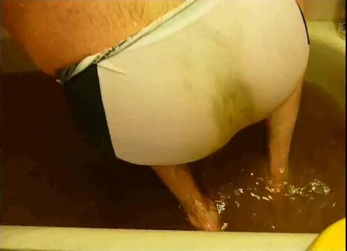 pooping in white brief in bathtub