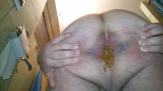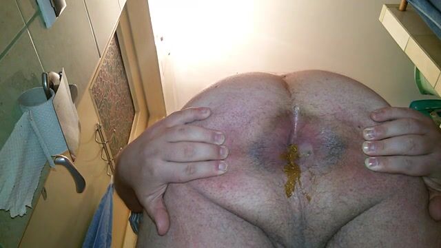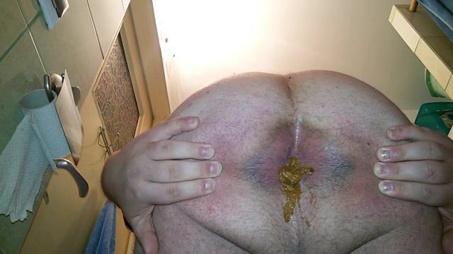 Grosse, dure et longue décharge fécale, inondée de foutre chaud