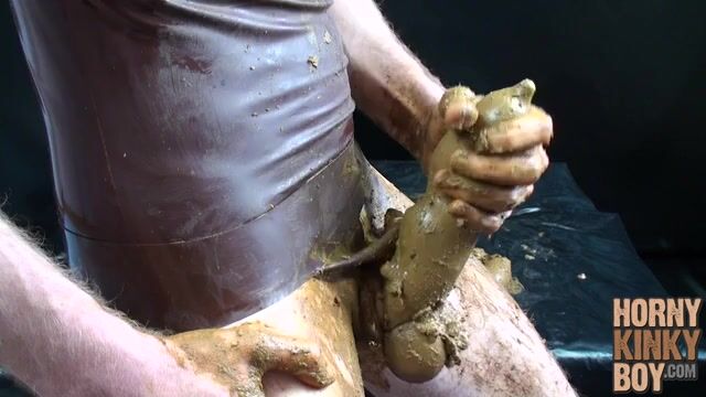 Scat Lover in Brown Rubber Eats and Plays Around