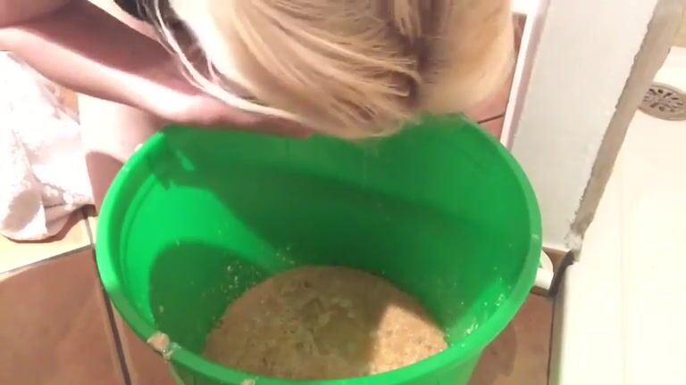 Cute blonde pukes and masturbates with a bottle