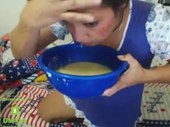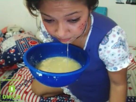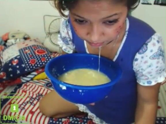 cute skype whore drinks puke and blows bubbles 2