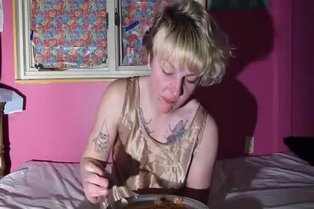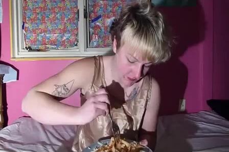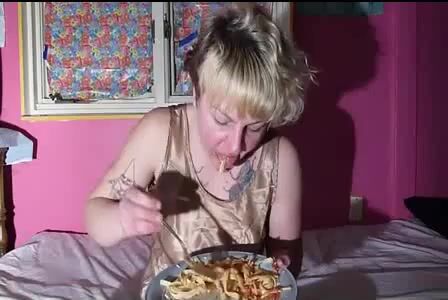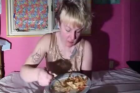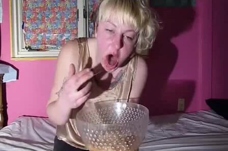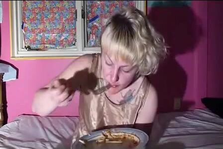 Bulimia Vomit and Food Poisoning - blonde girl puking pasta mp4