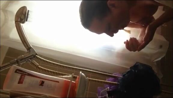 Girl puking in the shower