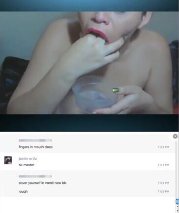 Latin slut vomits and slaps herself