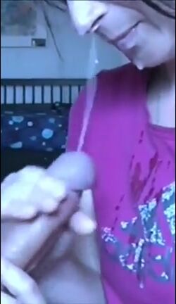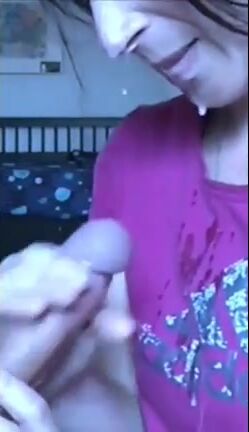 All over her face and shirt
