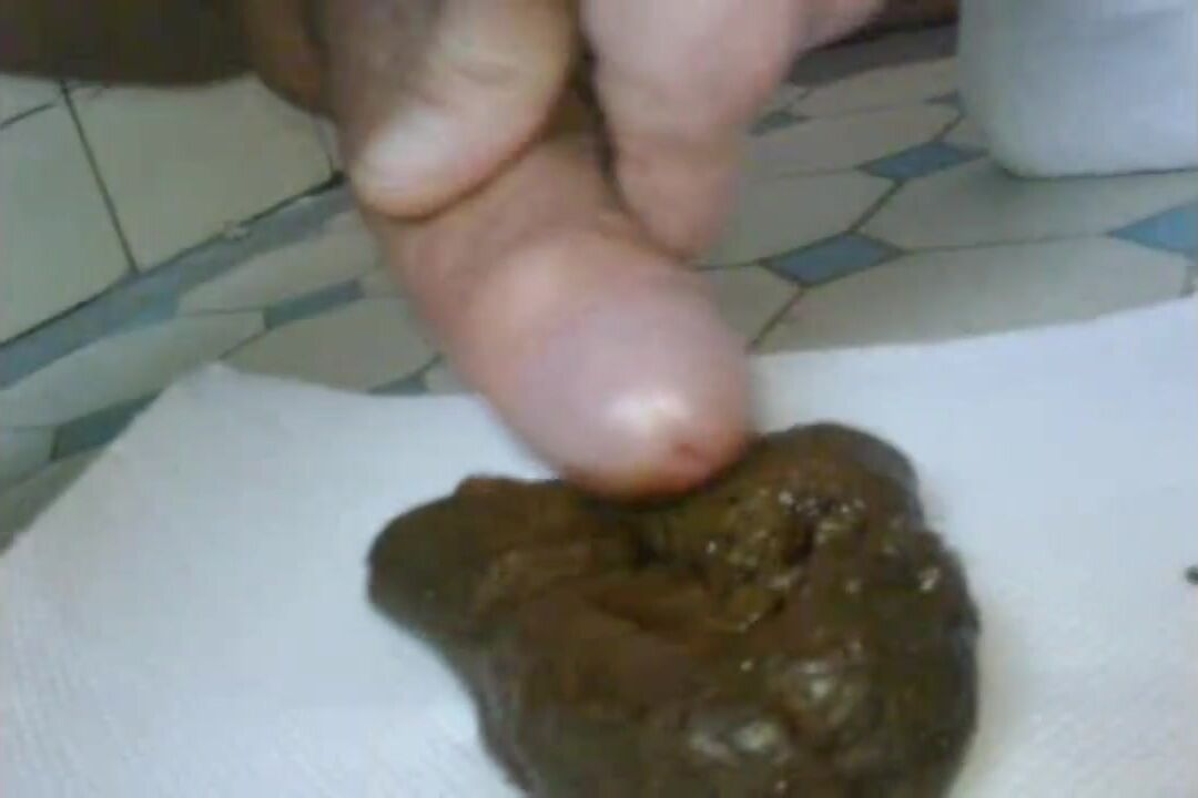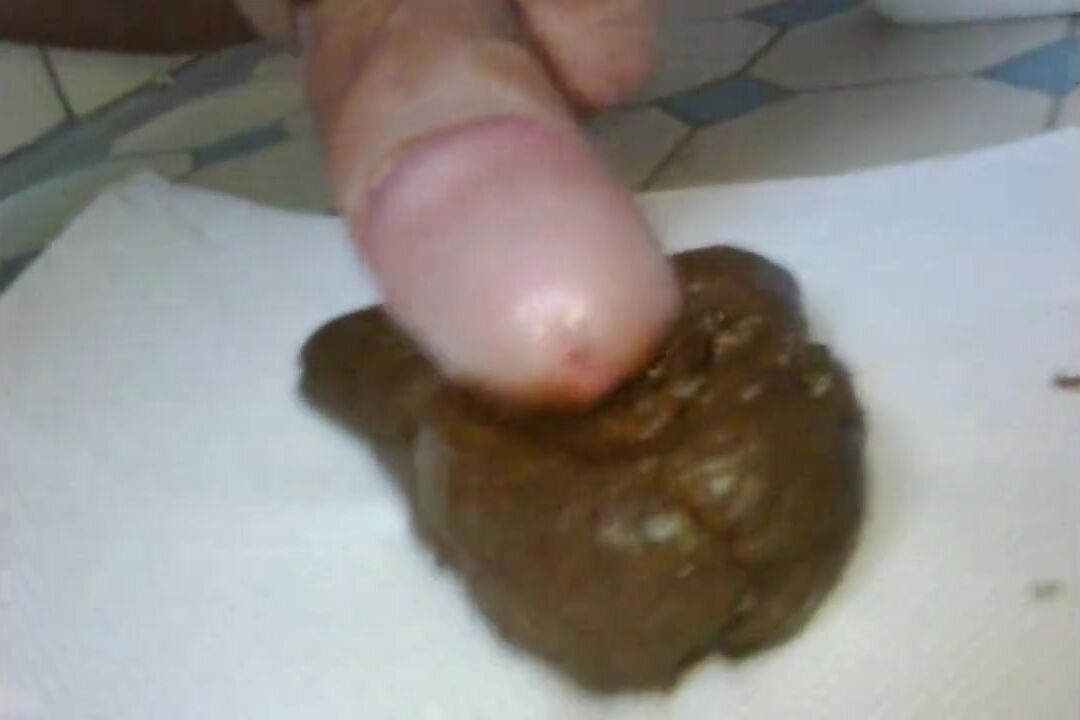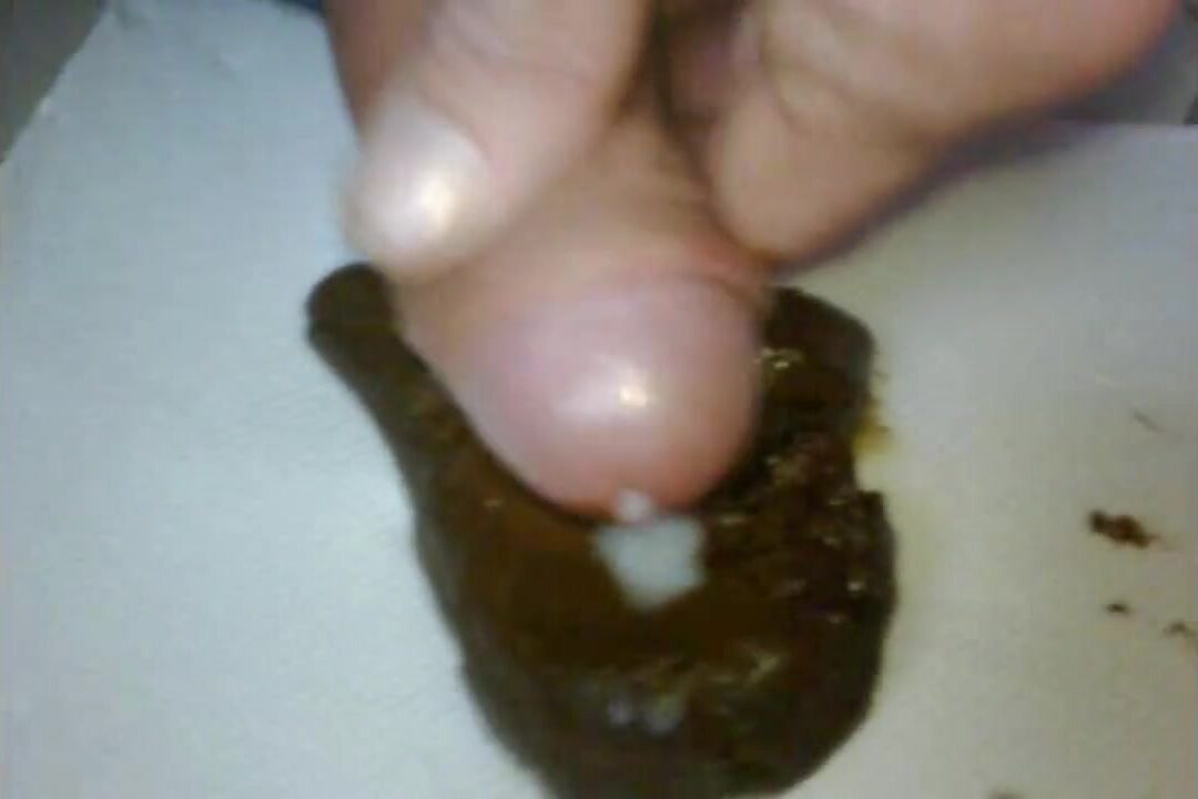Un bon gros caca boudin tout brun, chaud et odorant, je me fais éjaculer dessus
