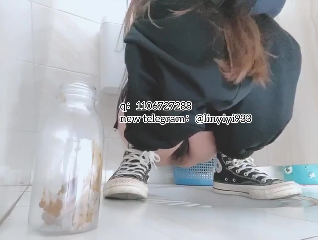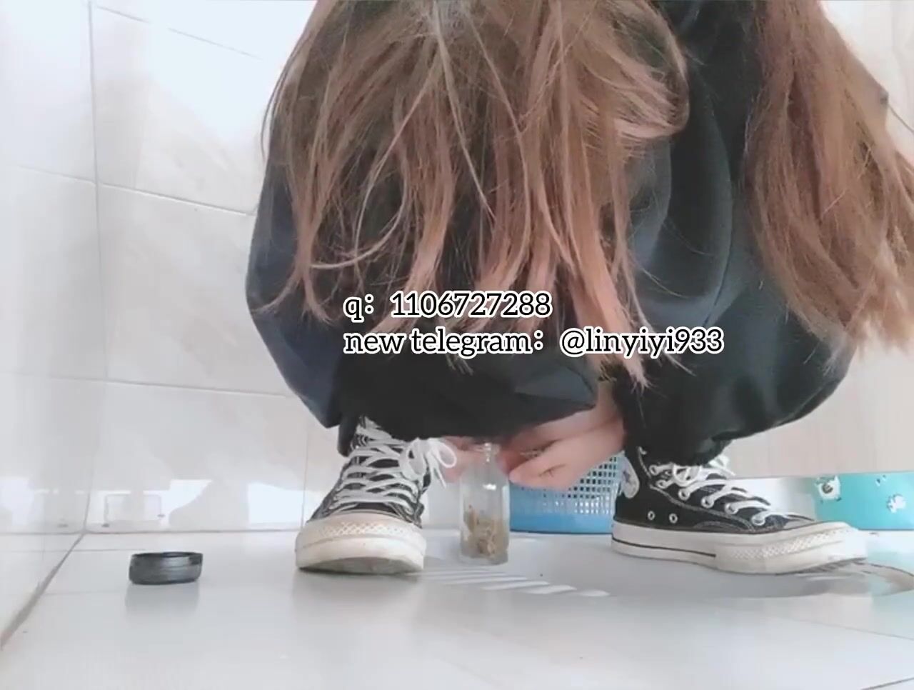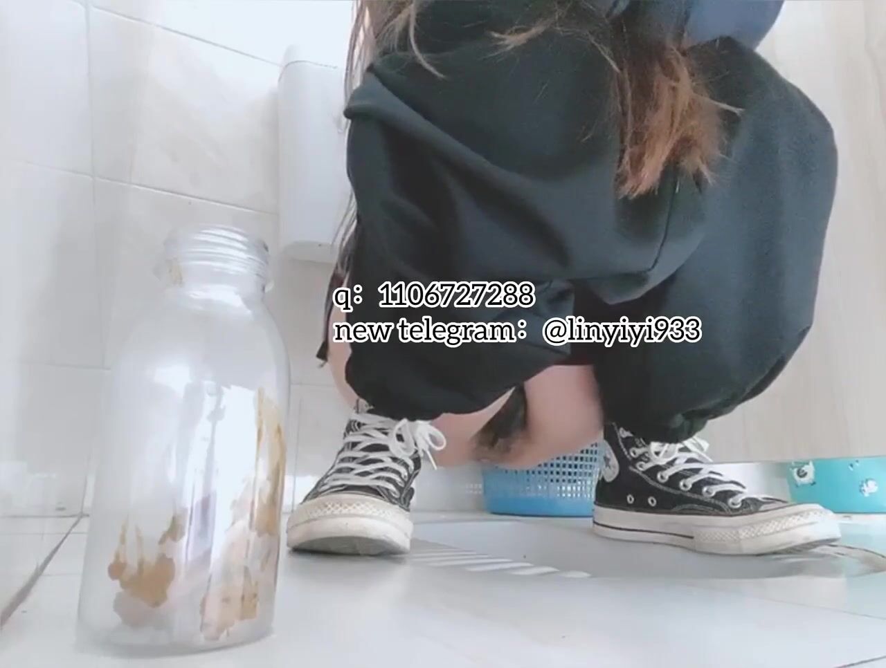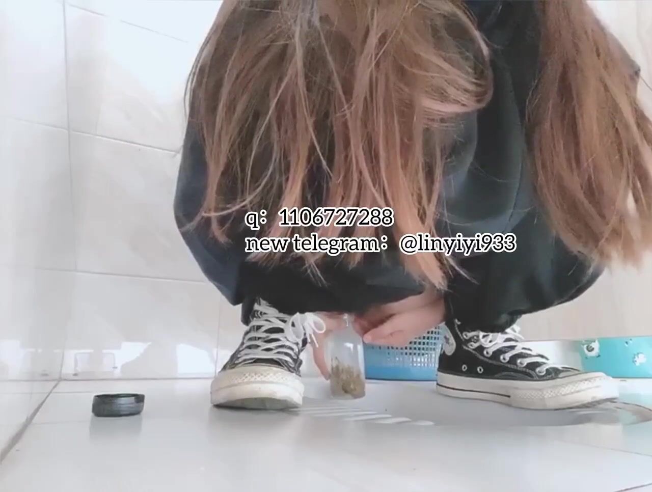 The girl excreted profusely in the toilet 70