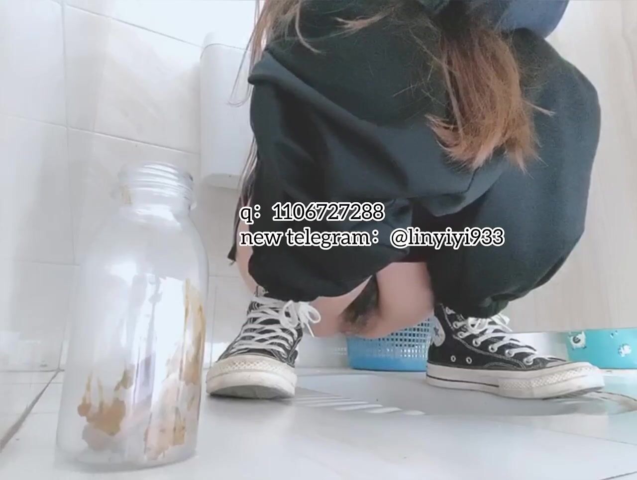The girl excreted profusely in the toilet 60