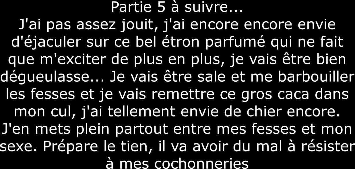 Partie 3, je joue encore avec mon bel étron brun entre mes fesses, je me fais jouir