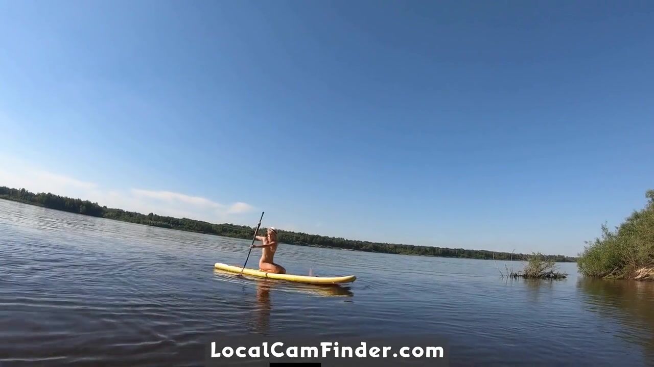 Blonde MILF Plays with Dildo and Gives Blowjob on a SUP Board