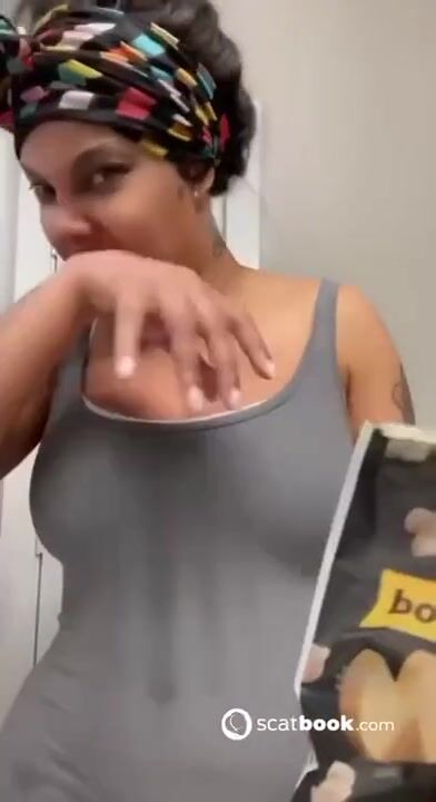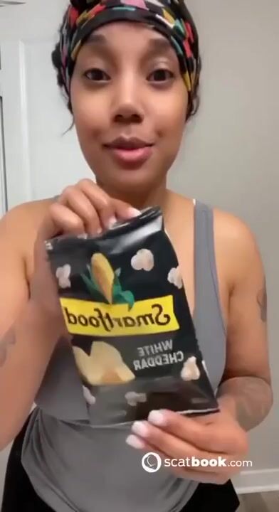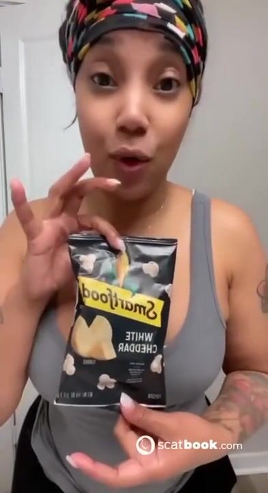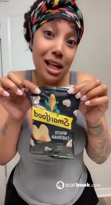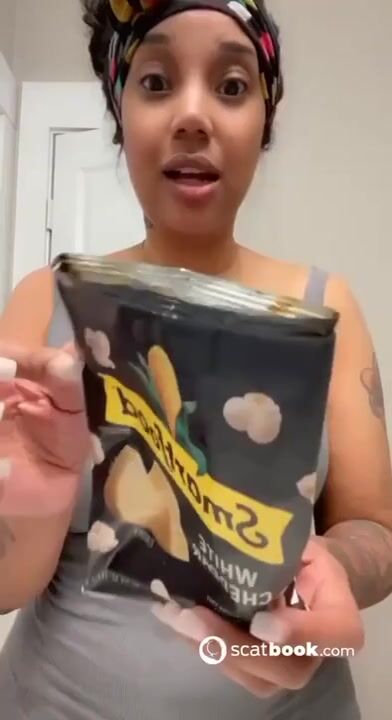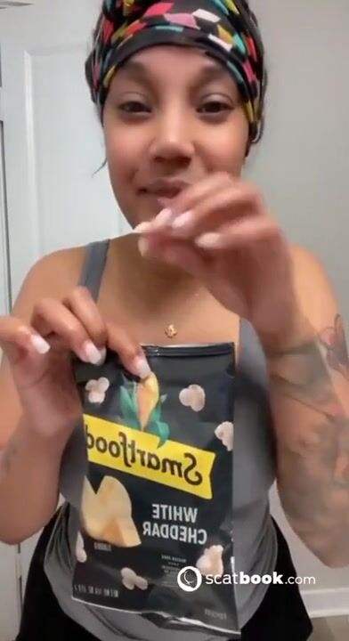 Kapri Styles ebony scat into a chip bag