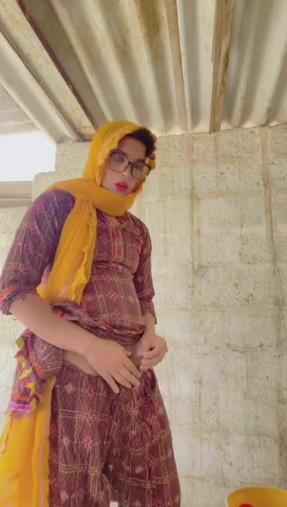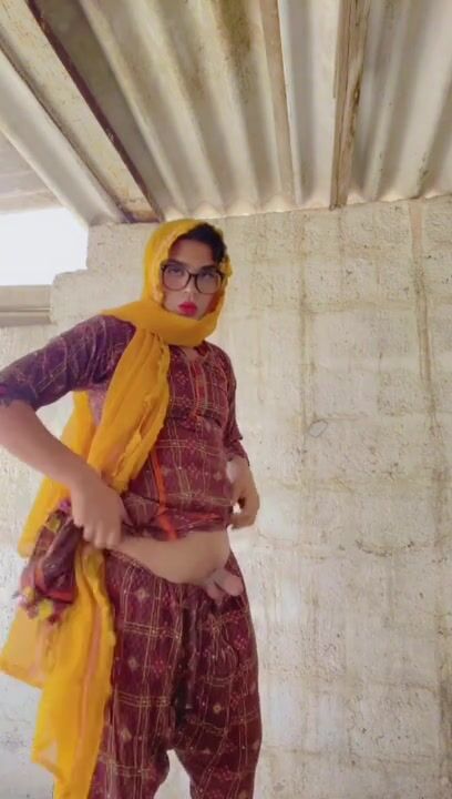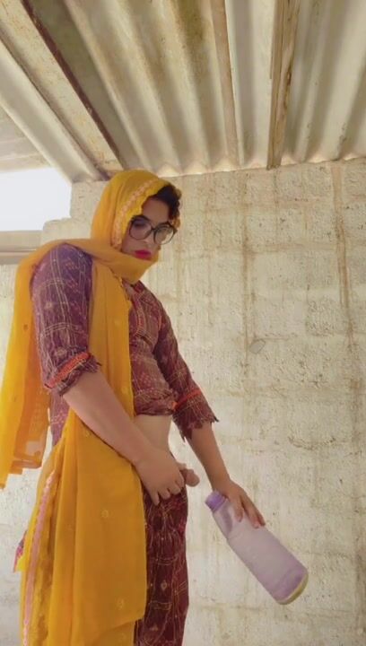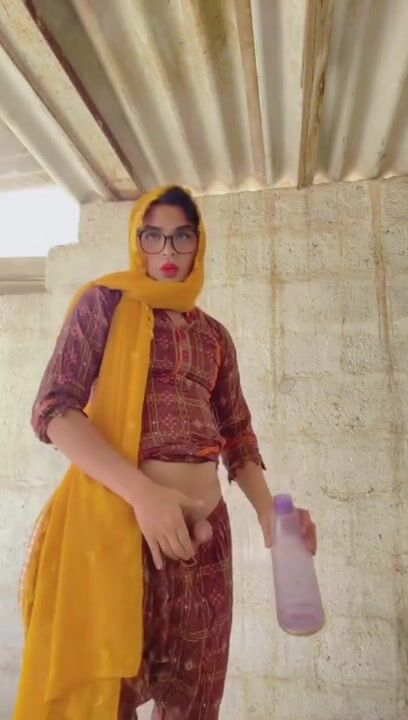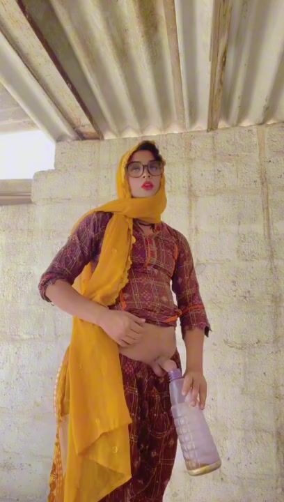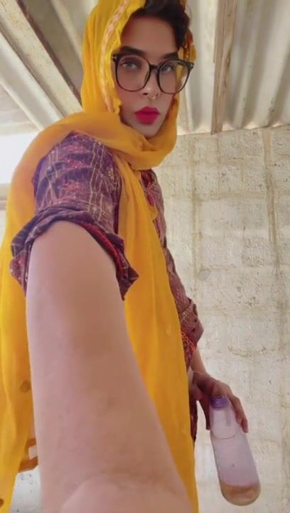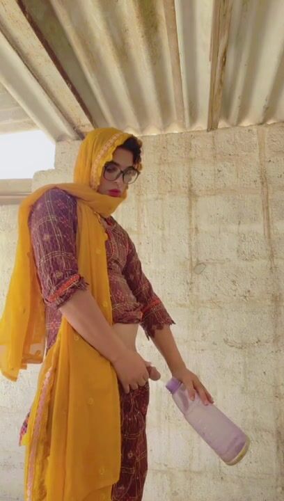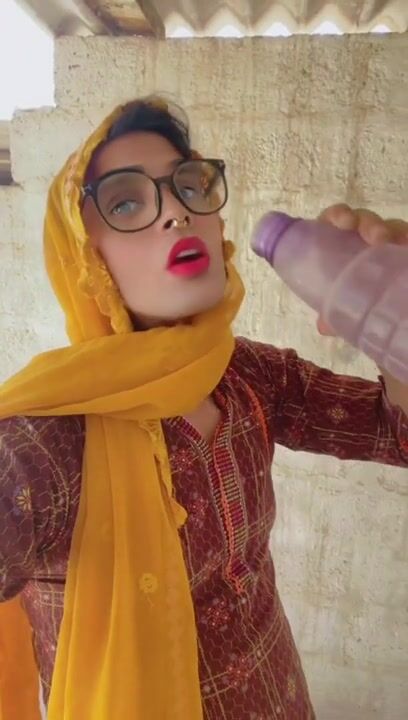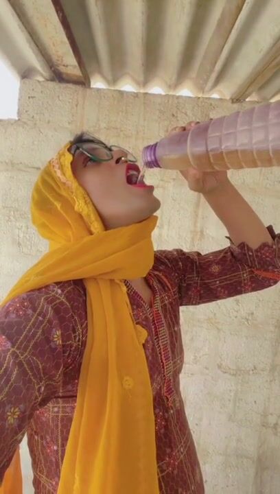 Beautiful trans Momina pee drinking outside