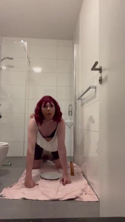 Sissy toilet playing with shit