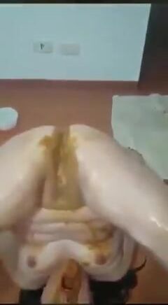 Chubby Asian girl shits on her pussy
